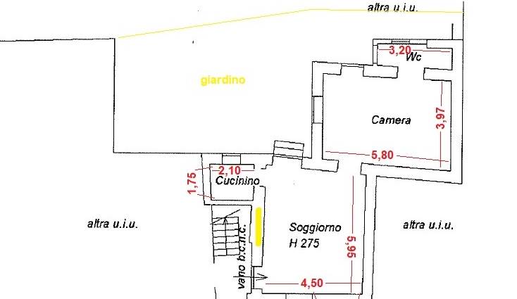 • Piano Terra – Bilocale su due livelli: 61 mq con eventuale giardino privato di 60 mq, cantina, box e posto auto. (85 mq comm.li)